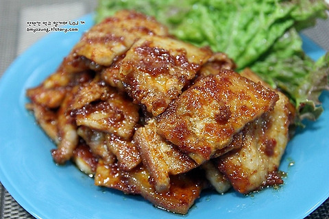 이 요리는 목살,갈비살과 같은돼지고기 다른부위나 치킨,새우,오징어 등등 다양한 재료로 만드는데요.