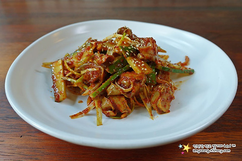 매콤한 소스에 마늘 맛이 나서 그런지 밥에 비벼 먹어도 맛있고요.