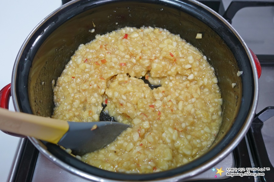 * 사과의 수분이 빨리 날아갈 수 있도록 바닥 지름이 20cm로 넓은 냄비를 사용하세요.