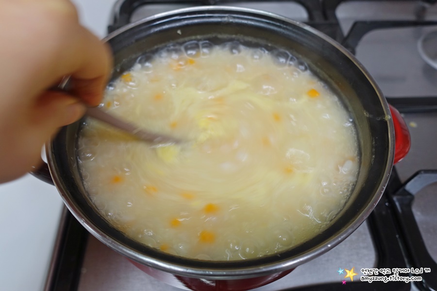 * 달걀입자가 고운 것이 좋다면 => 주걱을 마구 마구 재빨리 저어 섞어주시고.