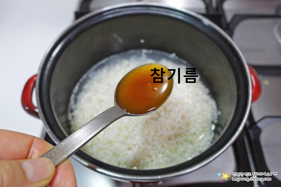 * 특히, 참기름(또는 들기름)에 쌀을 볶으면 곡류의 구수한 맛이 한층 더 진해집니다.