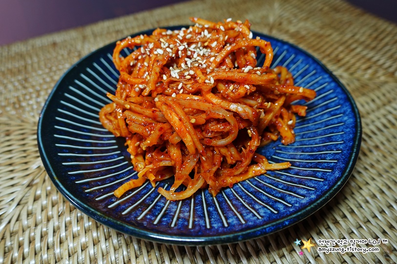 고추장 양념에 그냥 무치기만해도 충분히 맛있고 색도 좋아요.