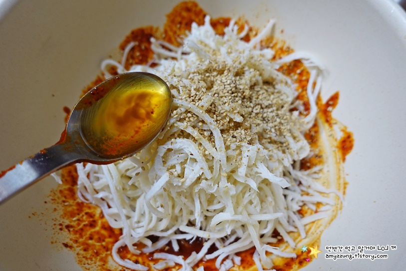 * 고춧가루 양념은 미리 만들어 수분에 불려주면 색이 진해집니다.