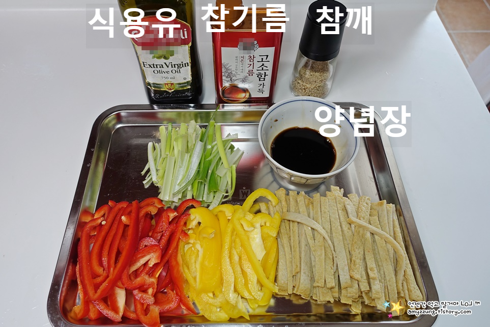 ▣ 주재료 : 파프리카 2개, 납작어묵 6장(총240g), 대파 10cm 한토막, 식용유2밥숟가락