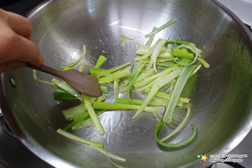 * 아삭한 식감이 죽지 않게 3분정도로 짧게 볶아주세요.