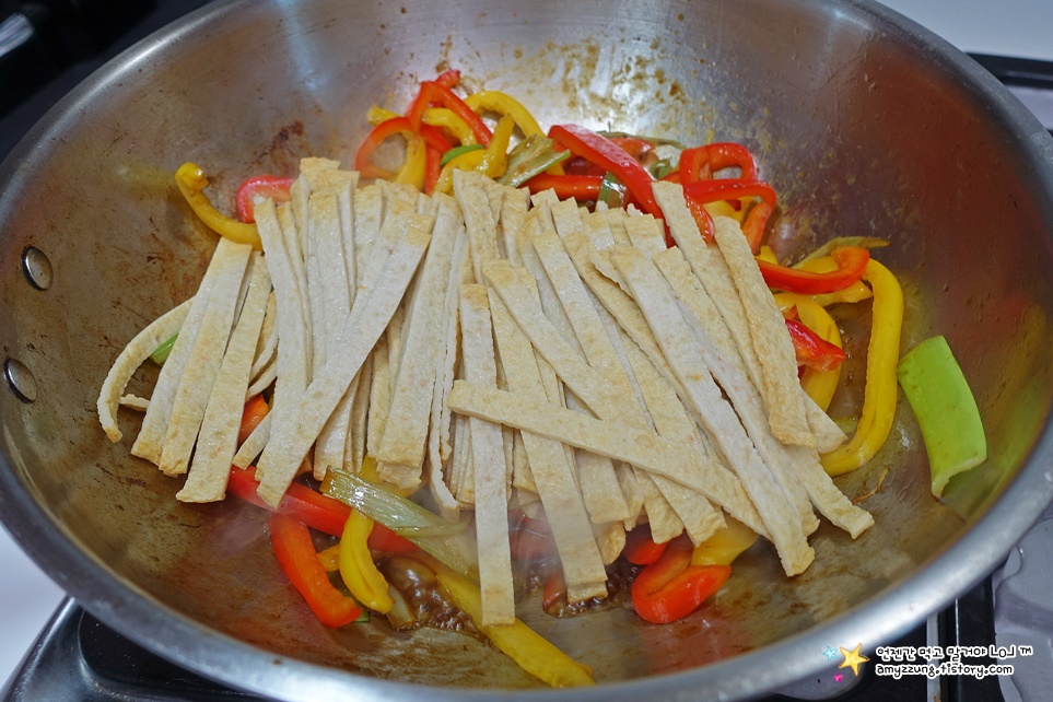 * 파프리카와 함께 젓가락으로 뜨기 쉽게 채썰어주세요.