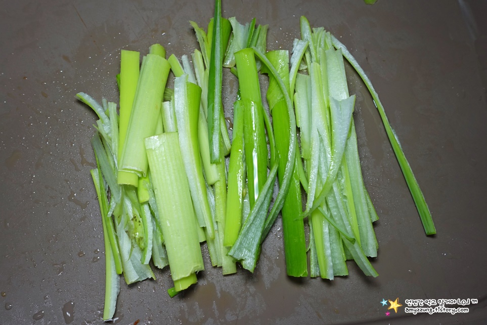 ▣ 대파 : 5cm 길이로 썰은 후 => 반으로 갈라 굵게 채썰어주세요.