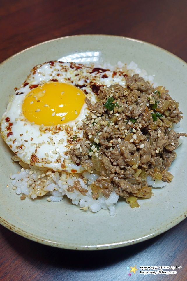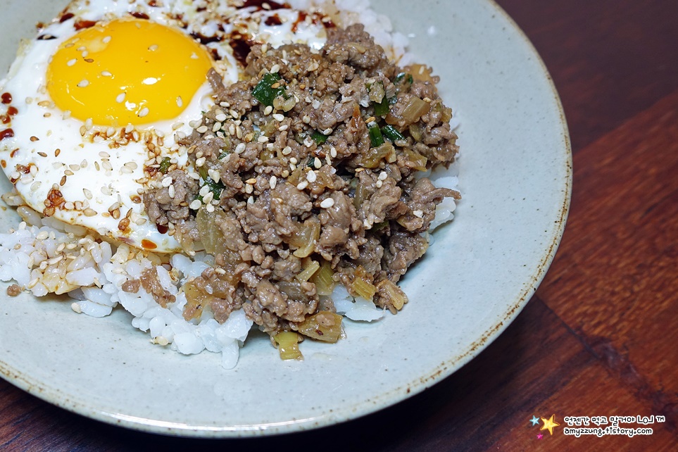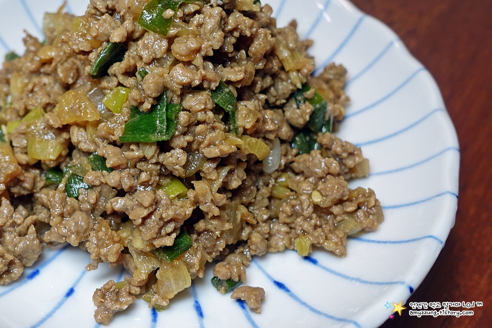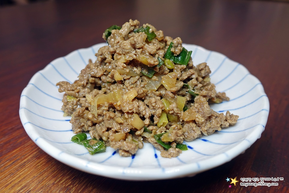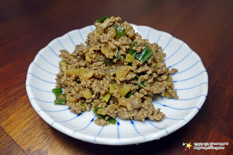 매콤한 다진 소고기 볶음인데 밥에 비벼먹거나 쌈채소에 쌈장으로 먹기도 하는데요.