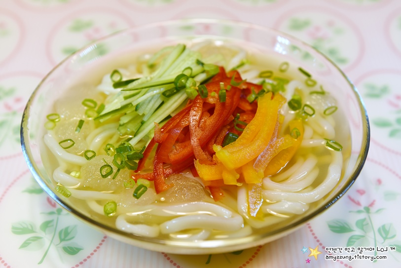 제가 어제 시원한 면요리 5가지를 올렸는데요. 그 중에 냉우동은 오래전에 소개했던 레시피라서 업그레이드해서 다시 소개합니다. 예전에는 밑국물을 다시마를 우려서 담백하고 깔끔하게 했다