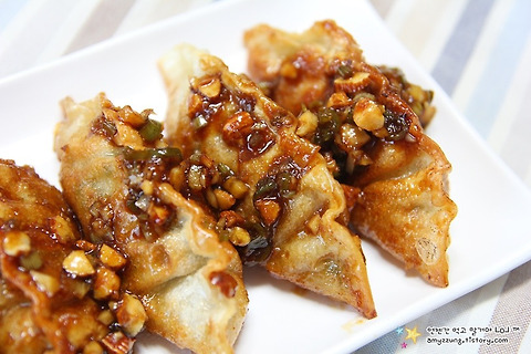고소한 고기 만두와 매콤 새콤 달콤한 양념의 맛궁합이 좋아요.