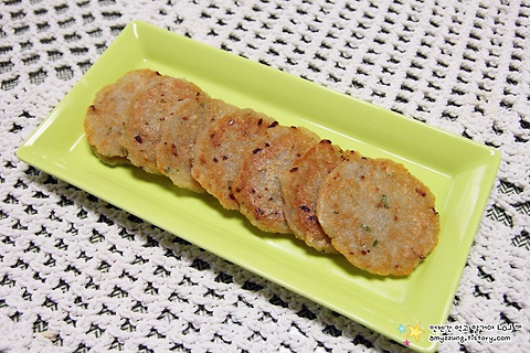 겉은 바삭하고 속은 쫄깃~부드러운데요. 주의할것은 쫄깃함을 위해 찹쌀가루를 많이 넣으면 생쌀맛이 나서 이상해요.